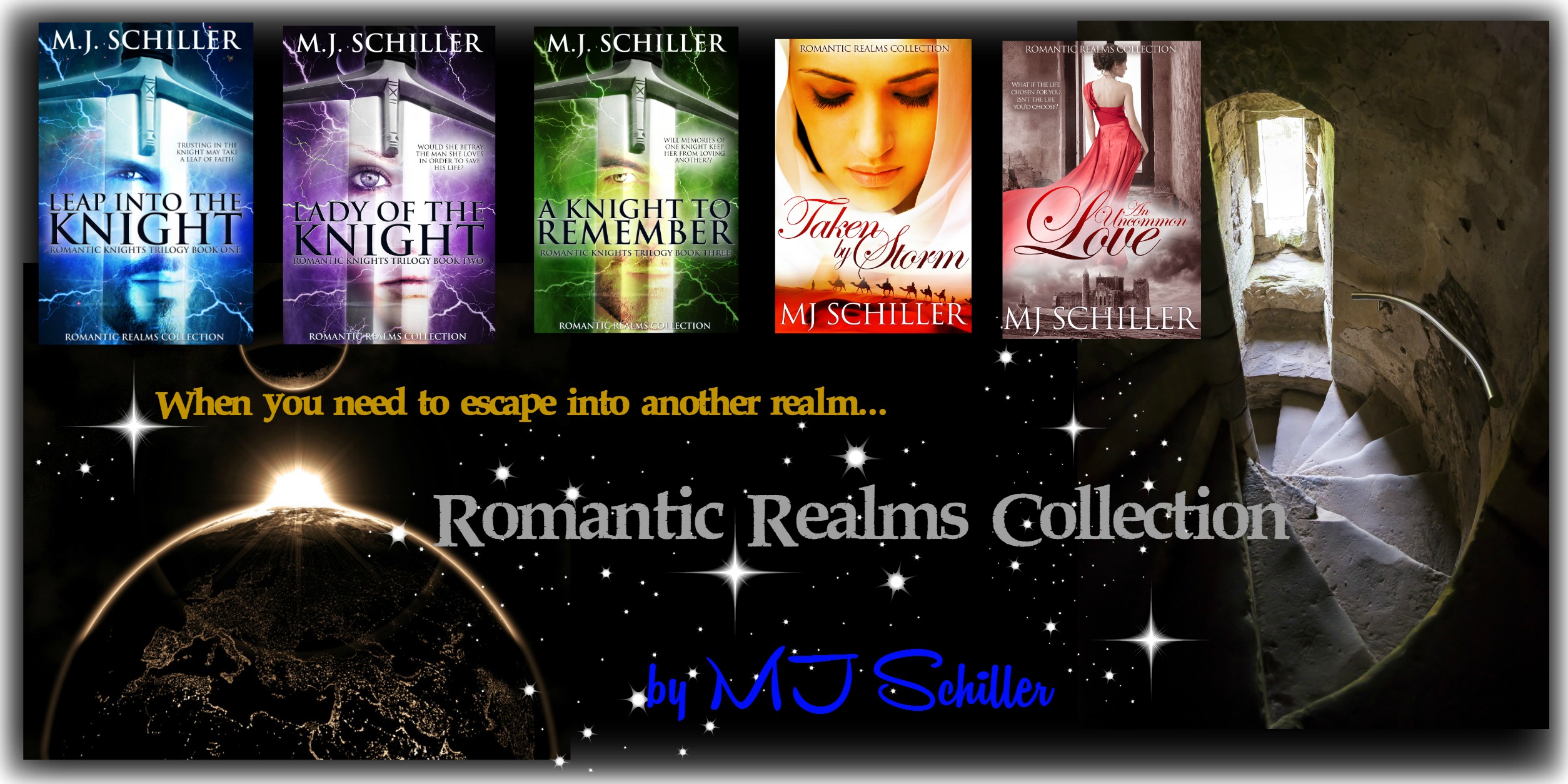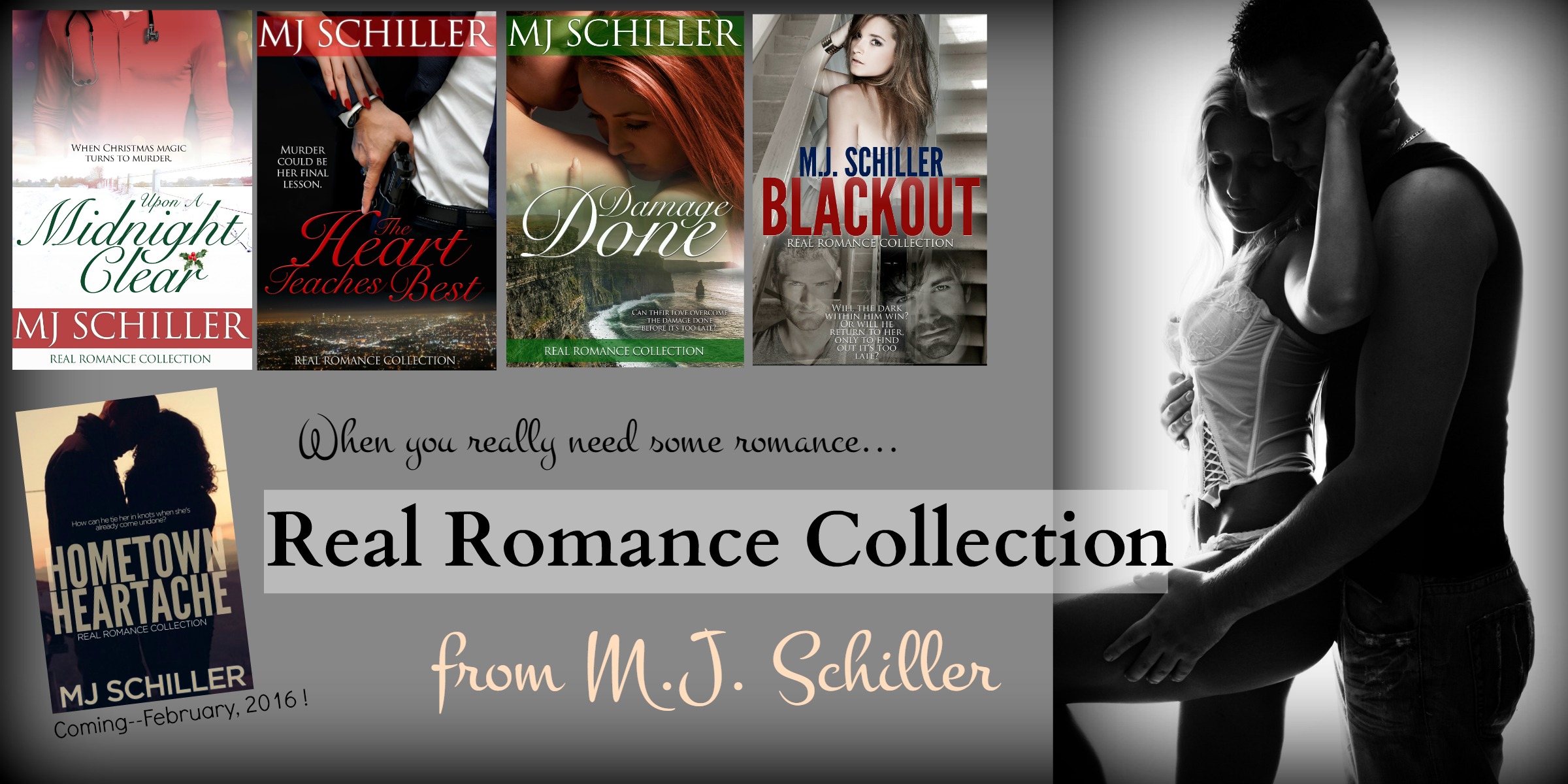 Why do I write about rock stars, real people, and royalty? Well, I’m going to let you in on a little secret… I harbor a covert desire to be a rock star, which I live out by singing karaoke to intoxicated bar patrons who don’t know the difference between good singing and bad. Why real people? Because EMTs and cops are so hot with that whole rescuing people thing, construction workers are often built, and musicians…there’s just something sexy about a guy who can sing! The collection with royalty feeds my childhood love for fairy tales. But no matter the characters or the setting—be it outer space, the desert, or a kingdom far, far away—my books have commonalities. An M.J. Schiller book will have humor, heartbreak, and passion. I also like to bring in family relationships a lot—cause what family doesn’t have some humor, heartbreak, and passion of their own?