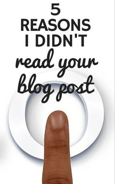 According to some pins (see below), I have a nasty mom habit, I’m blogging wrong, pinning wrong, writing characters wrong, my Pinterest strategy isn’t working, I’m sabotaging my hair and skin, my blog is mediocre… and this one really bugs me: “5 Reasons I Didn’t Read your Blog Post.” It’s all so accusatory!